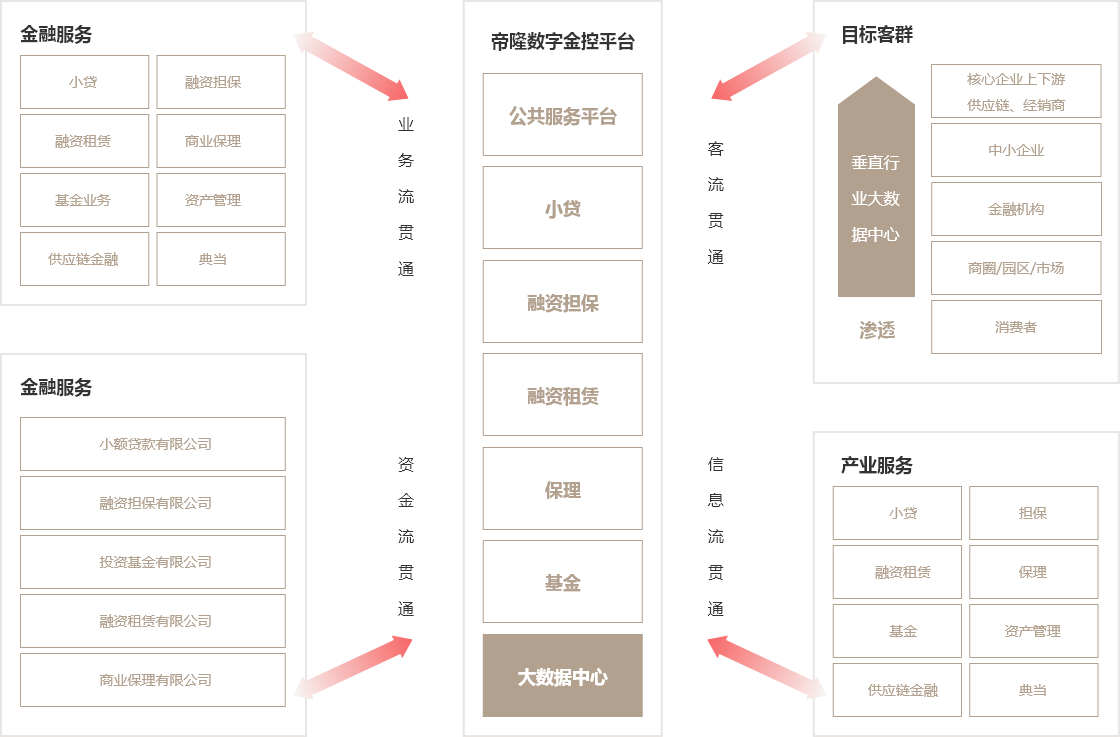 尊龙时凯数字金控平台是从金控/金投/产投集团角度出发,,,,为集团搭建统一的金融数字化业务管理平台,,实现对金控整体金融资源的全面整合,,,,从基础上支撑金控集团内部各金融业务单元的业务运营及营销管理。。。。利用云计算、、、、大数据、、、、移动互联网、、、、知识图谱、、、神经网络、、、行为序列、、、生物识别、、区块链等技术构建行业领先的智能风控、、智能营销、、、、智能财务、、、、智能支付等智能服务体系,,提升产品和业务的数字化、、智能化,,,助推数字化转型。。。建立统一的账户体系、、、风控体系、、、、营销体系,,,实现金融产品和服务的统一管理运营。。提供集中的客户管理系统,,统一的账户体系,,,,统一的金融产品配置及管理,,,统一的定价模型,,,统一财务总账管理,,支持各类金融产品的统一配置及管理,,,并以组件和服务的方式支持金控集团各专业金融系统。。。涵盖金控集团涉及的各种商业模式,,能够满足客户不断丰富、、、、变化的业务需求,,自由组合、、按需配置。。。。